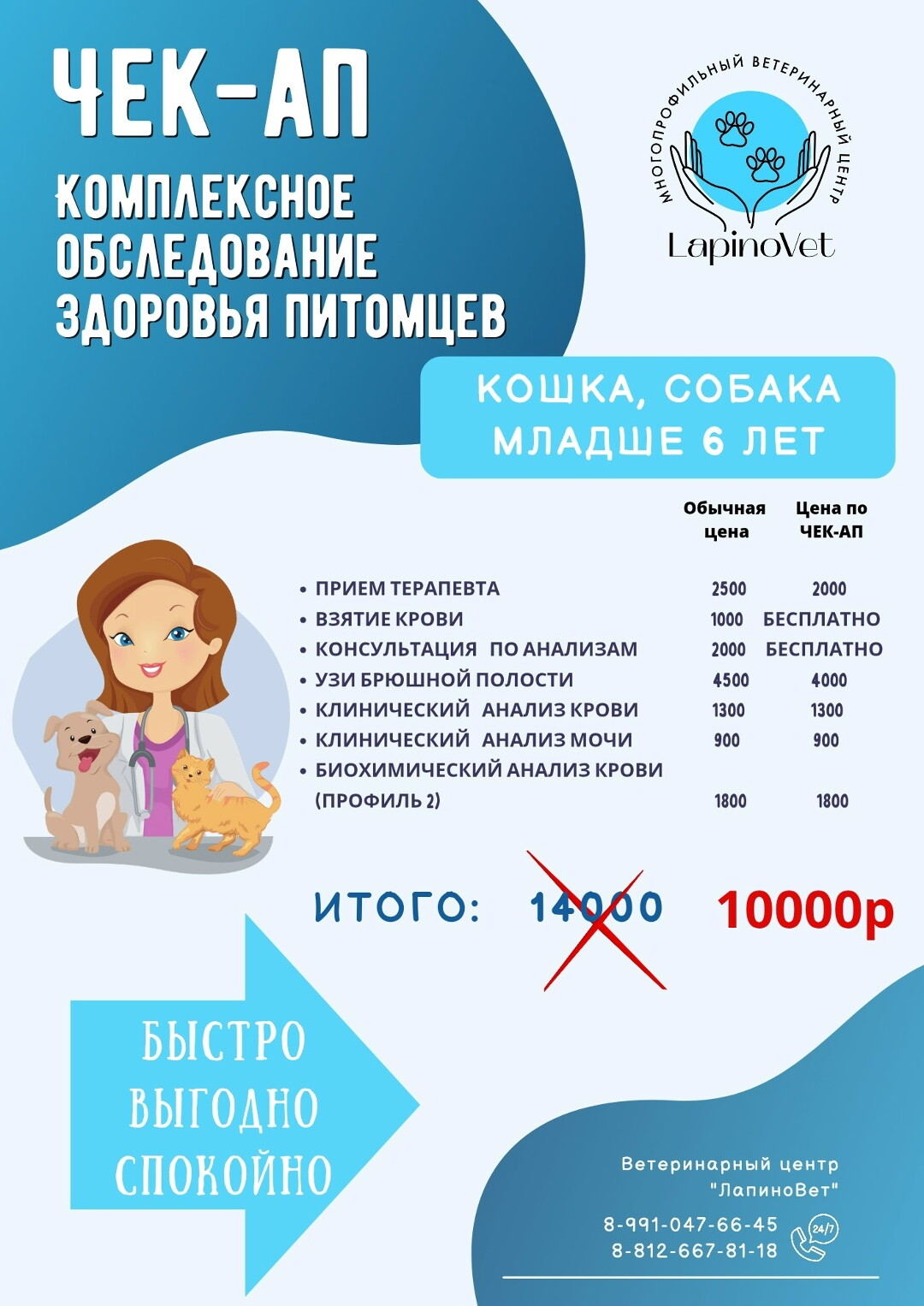 В этом центре работают организованно и без лишних проволочек, нас сразу зарегистрировали и оперативно пригласили на прием. Персонал подробно рассказал о процедурах, не заставлял долго ждать, быстро выдал письменные рекомендации, в целом остались довольны обслуживанием. Мы привезли кота на предоперационное обследование перед вмешательством на почках и на удаление зубов, поскольку состояние ротовой полости было уже критическим. Питомец сейчас восстанавливается нормально и уже начал есть.